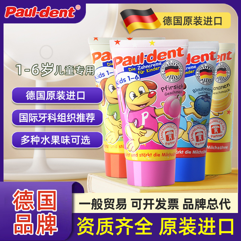 ドイツ原装輸入宝児徳含フッ素児童いちご歯磨き粉防虫歯低泡1-2-3-6歳50ml