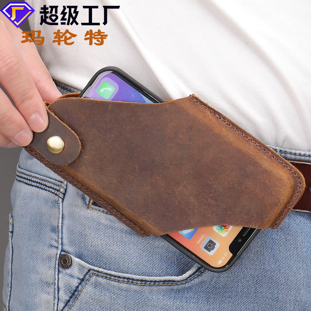 新しい携帯電話ウエストバッグメンズ 6.5inch 7.2inch ベルト着用建設現場作業垂直牛革携帯電話ウエストバッグ