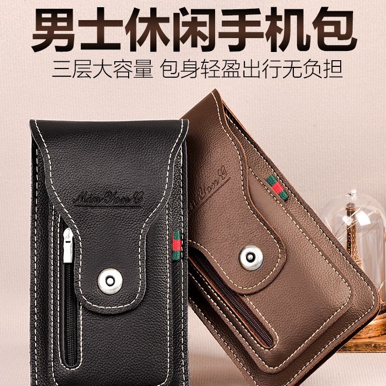 男性用の新しい携帯電話バッグ、本物の牛革の腰に掛けた携帯電話カバー、高齢者用の財布バッグ、横型と縦型の単層と二層のベルト付きウエストバッグ