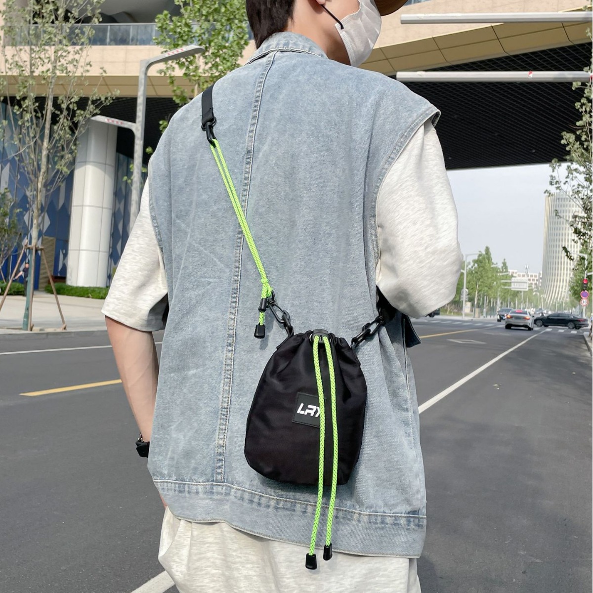 2024新型の潮牌の個性のミニリュックサックはロープを引いて斜めにショルダーバッグの女性の街頭のトランポリンの首を掛けて男性の携帯電話のカバンを包みます。