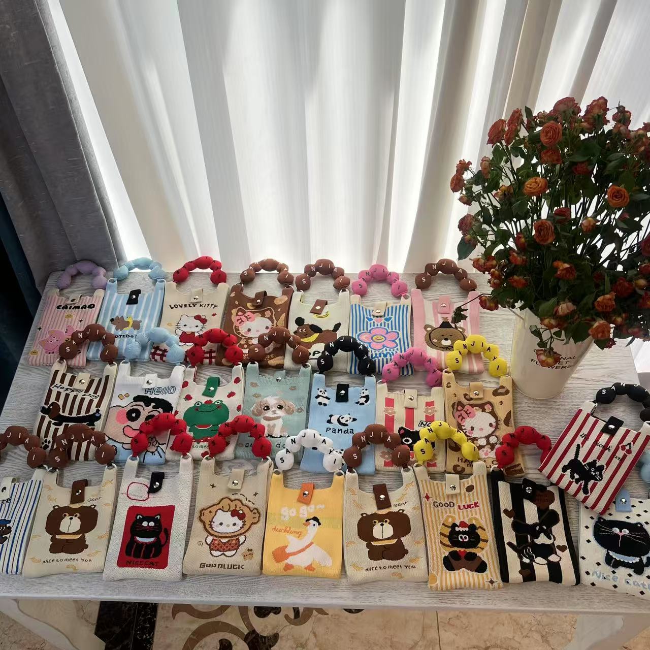 新しいかわいい漫画ニット携帯電話バッグ女性のための韓国語版多用途ショルダークロスボディバッグ旅行小銭入れ小さなハンドバッグ
