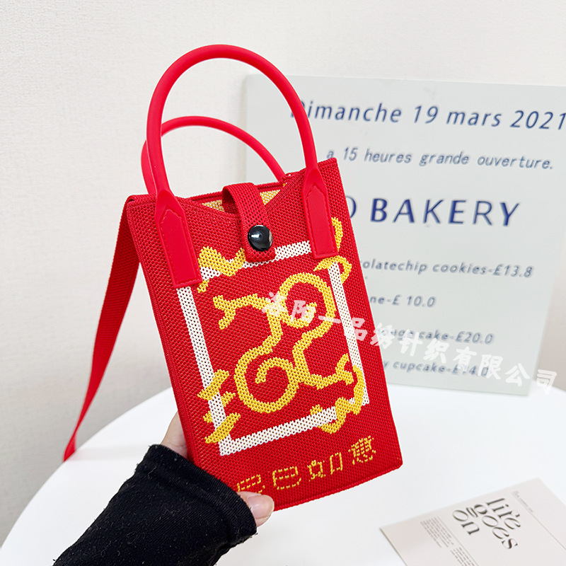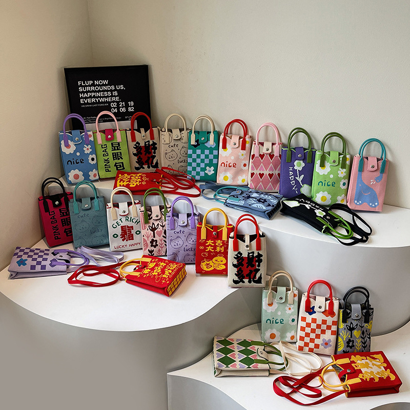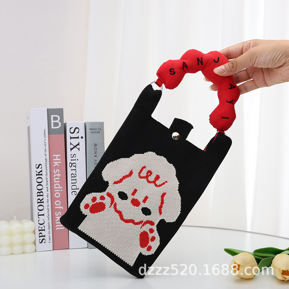 2025年新型スマホバッグ 漫画風ニットバッグ ハンドバッグ 個性的で万能な斜め掛けバッグ 編みバッグ 通勤用携帯バッグ
