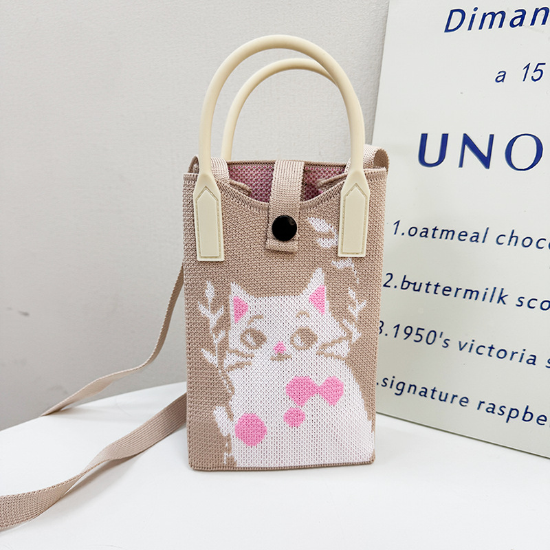 ニット携帯電話バッグニッチデザイン漫画幸運ミニ多用途猫バッグクロスボディバッグ女性のショルダー