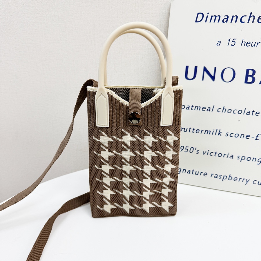 愛らしい配色のニット製ハンドバッグ、小銭入れ、収納ショルダーバッグ、毛糸製携帯電話バッグ、斜め掛けミニポータブルバッグ(女性用)