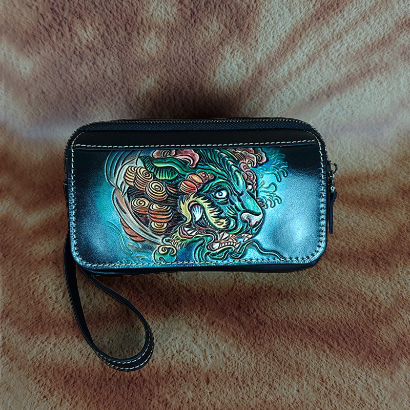調皮匠の携帯電話は男性の本革の高級感のあるハンドバッグを包んでいます。