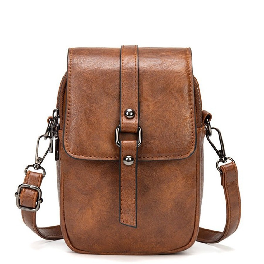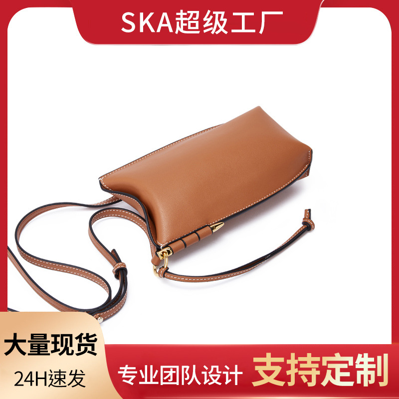 工場供給2024年製一層牛革ナッパ柄携帯電話バッグ、植物タンニンなめし革携帯電話バッグ、レトロな形の斜め掛けツインバッグ