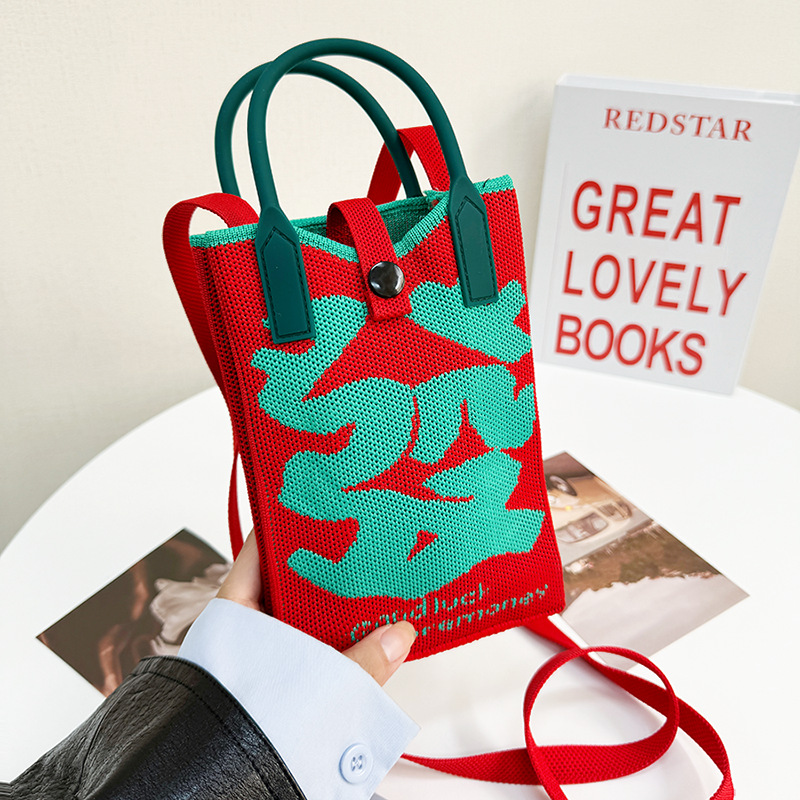 2025ミニレッドフォーチュンモバイルバッグ新年斜め掛け女性用旅行用ニット製ハンドバッグギフトバッグ斜め掛け