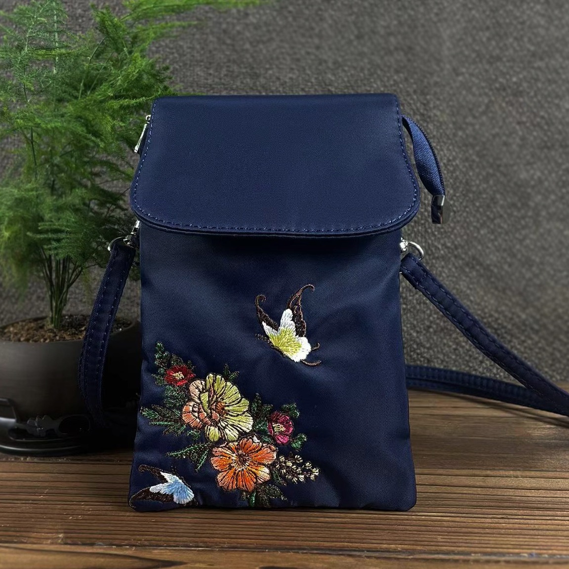 国風刺繍工芸の携帯バッグ女性の斜め掛けのミニショルダーバッグ民族風バッグナイロン布の現物