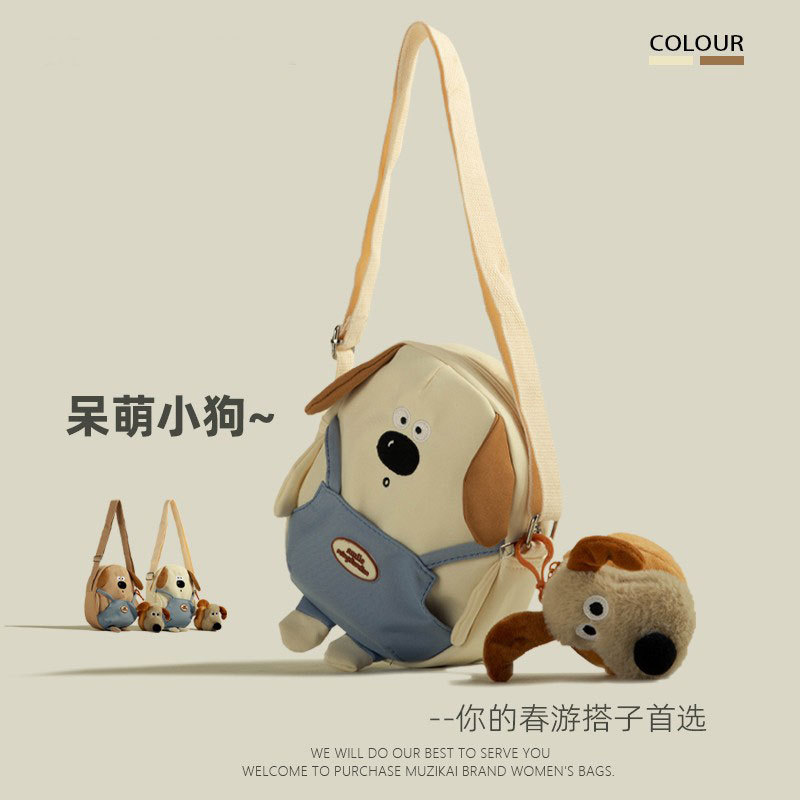 今年の流行の質感の斜め掛けの携帯電話のカバンの女性の2025の新型の夏のかわいい人形の広い肩掛けの小さい犬のカバン