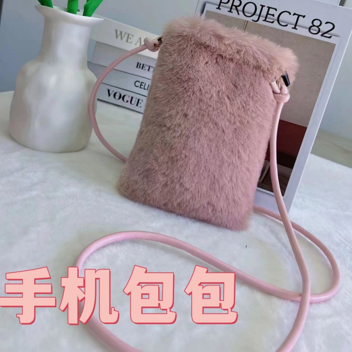 ぬいぐるみの携帯電話バッグの女性秋冬の新型毛のふわふわした斜めショルダーバッグのミニショルダーバッグの縦型の携帯電話バッグの毛羽立ちの小包