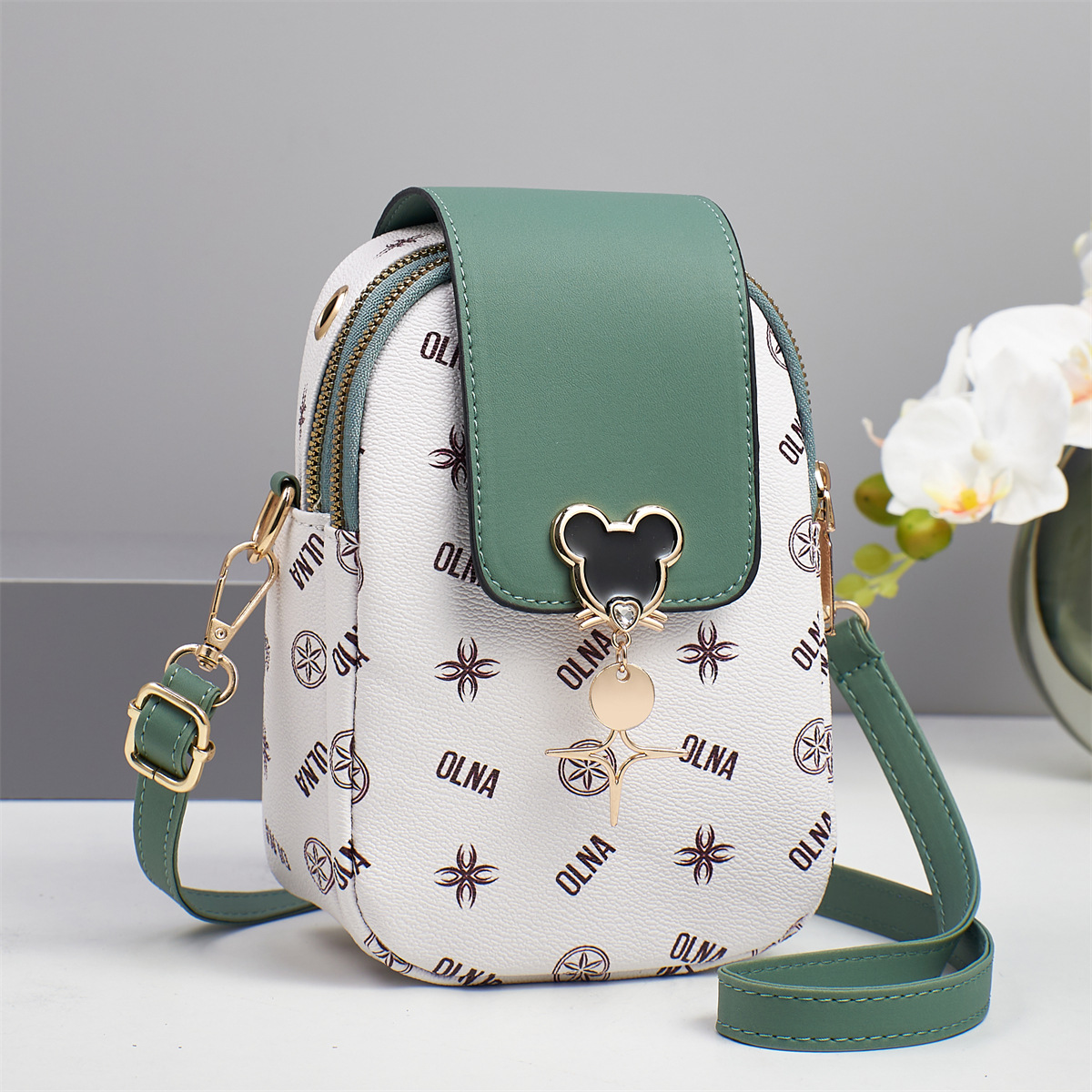 新商品の清新で甘いレイシの紋様の女性のショルダーバッグは日常的にファッションのins風の斜めのショルダーバッグを使って携帯電話のカバンを卸売りします。