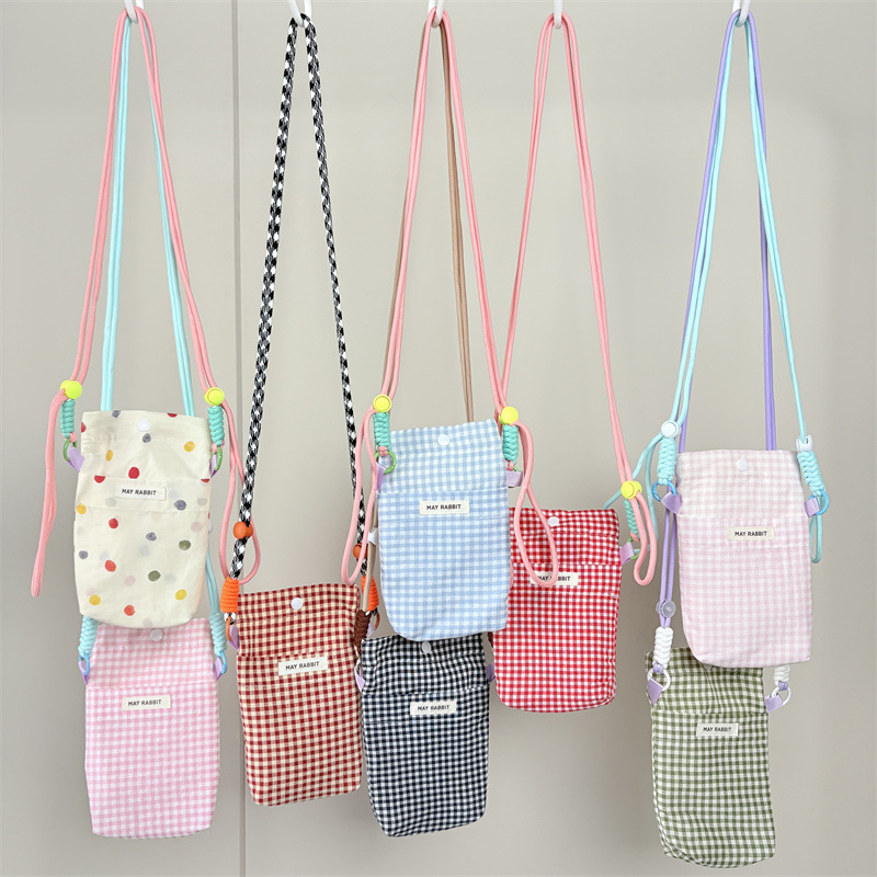 2024新型韓国格子携帯バッグ清新個性携帯バッグ可愛い少女刺繍百掛け小角バッグ