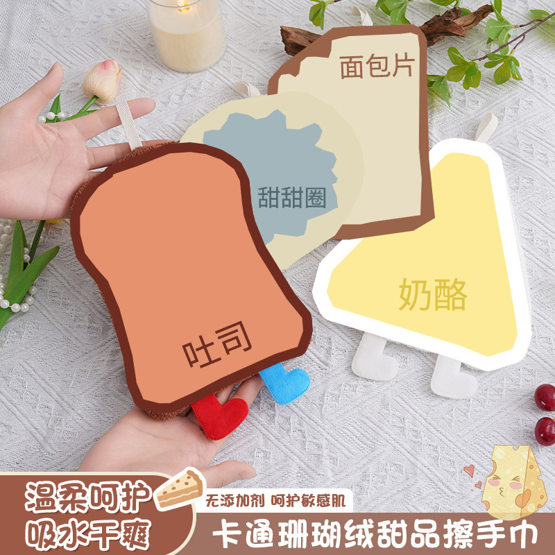 ハンドタオルかわいい漫画チーズトーストシリーズベーキングハンドタオルぶら下げ吸収性子供用コーラルベルベット小さなタオル