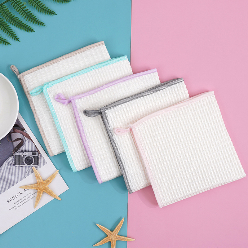 木繊維の食器洗いタオルは油汚れがつきにくく、キッチンの掃除用布、家庭用の厚手のハニカム構造の食器拭きタオルで油汚れを落とします。
