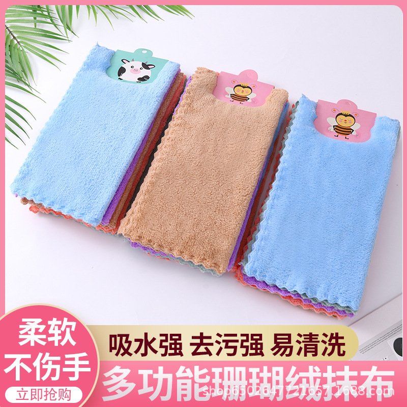国境を越えたソース韓国版かわいいアニメタオル掛け三層厚いサンゴのベルベットキッチン拭き手速乾性タオル