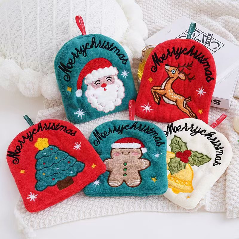 国境を越えたクリスマスの新製品サンゴのベルベットの手タオルクリスマスプレゼント漫画キッチン雑巾子供クリスマスタオル