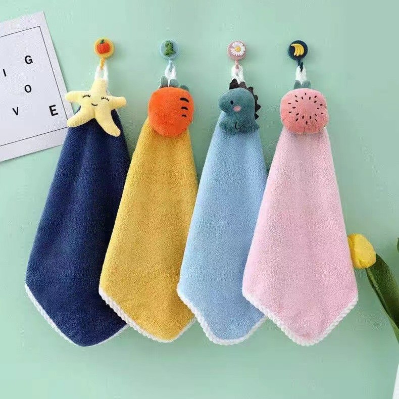 吊り下げ可能なサンゴのベルベットのタオル漫画動物の手拭きタオルキッチントイレ吸水タオル拭き雑巾