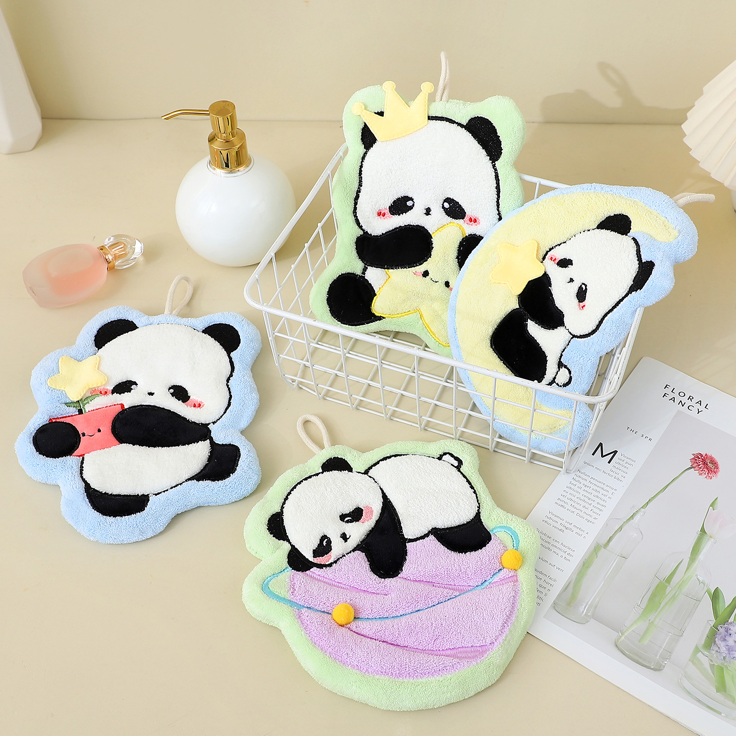 かわいいパンダは掛け式の手ぬぐいを拭くことができます。