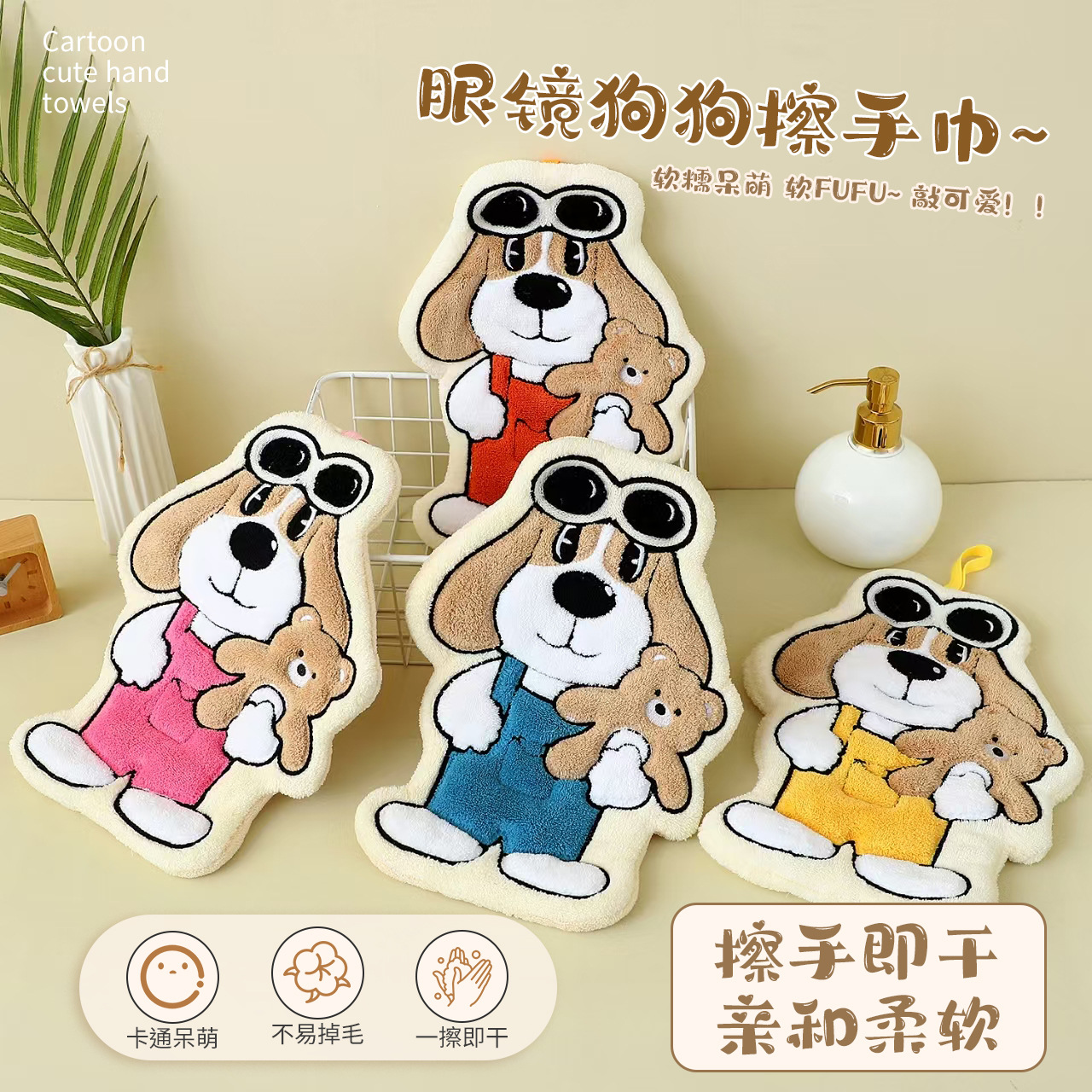 新しいサンゴのベルベットのかわいい犬はタオルを拭くことができて、台所のトイレに毛が落ちない吸水アニメの子供タオルをかけることができます