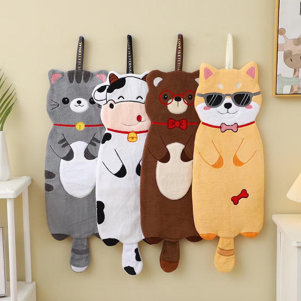 かわいいアニメの手拭きタオルは吊り下げ式で厚いサンゴのベルベットのトイレの台所で手拭きタオルのハンカチを拭くことができる