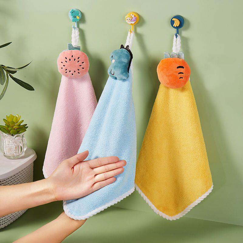 かわいいアニメ野菜拭きタオル吊り下げ式厚いサンゴのベルベットキッチントイレ拭き手速乾性タオルハンカチ