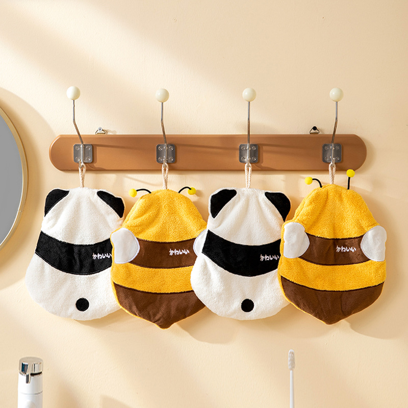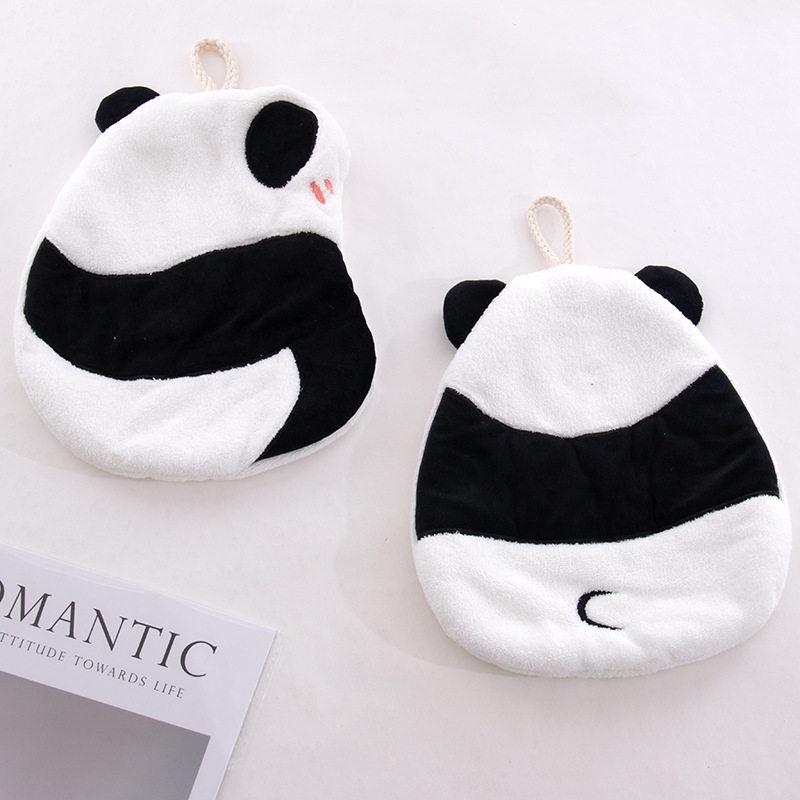 パンダのかわいい子供向け漫画柄の吊り下げ式トイレ・浴室・キッチン用吸水速乾コーラルベルベットハンドタオル/ふきん