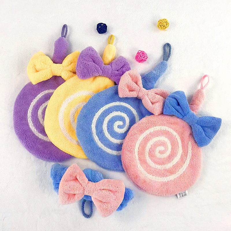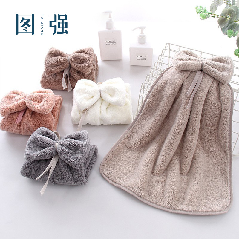 図強かわいい吊り下げ式柔らかい吸水サンゴタオルキッチン浴室家庭用蝶結びタオル