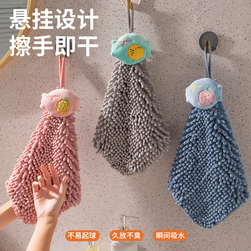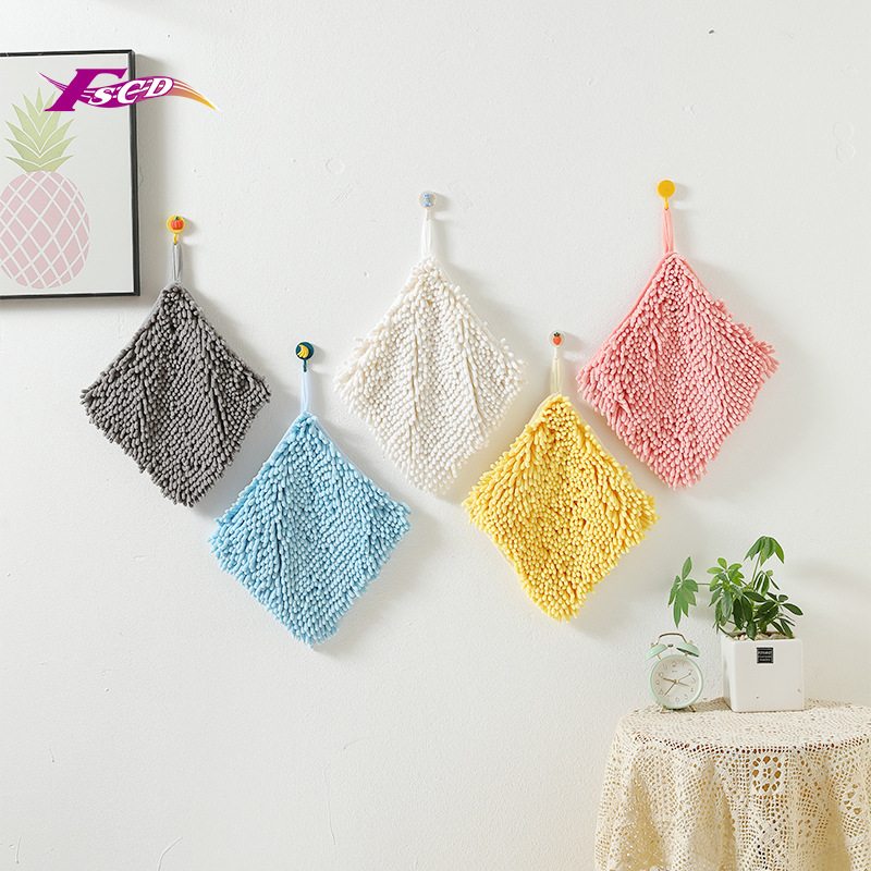 純色の手拭きタオル掛け式家庭用シェニールの手拭きタオルキッチンの手拭きトイレの子供用のスカーフ