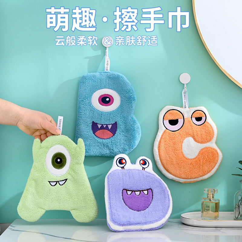 ハンギングハンドタオル、臭わないコーラルベルベットハンドタオル、子供用ハンドタオル、吸水速乾漫画ハンドタオル