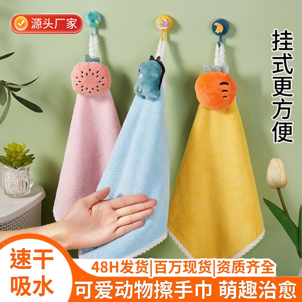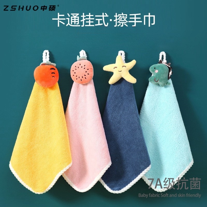 吊り式タオル卸売り家庭用キッチンコーラルタオル吸水漫画子供掛けタオル雑巾工場