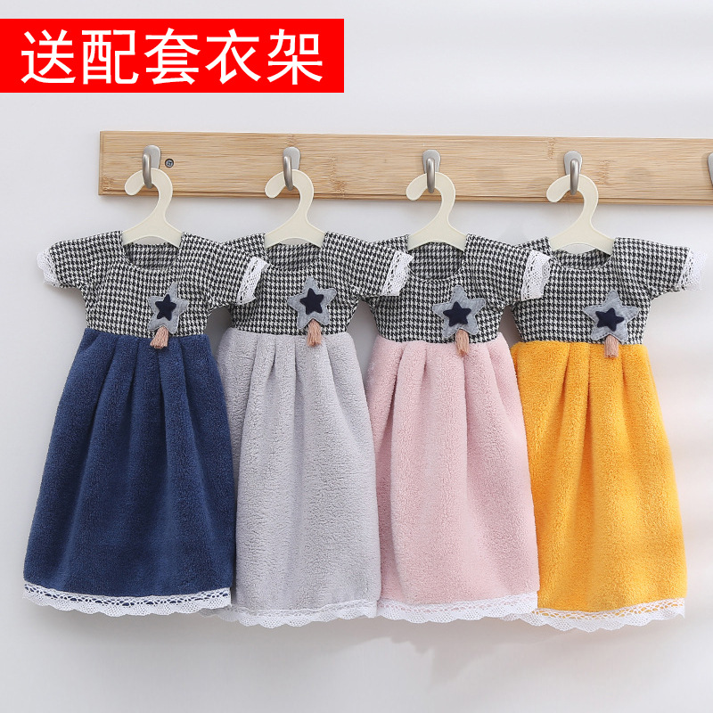 手拭きタオルかわいい服千鳥格スカート子供五角星サンゴベルベットタオル掛け式吸水家庭用