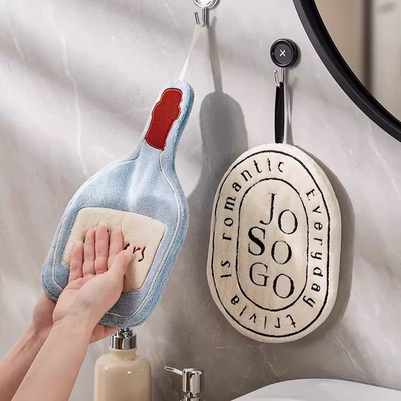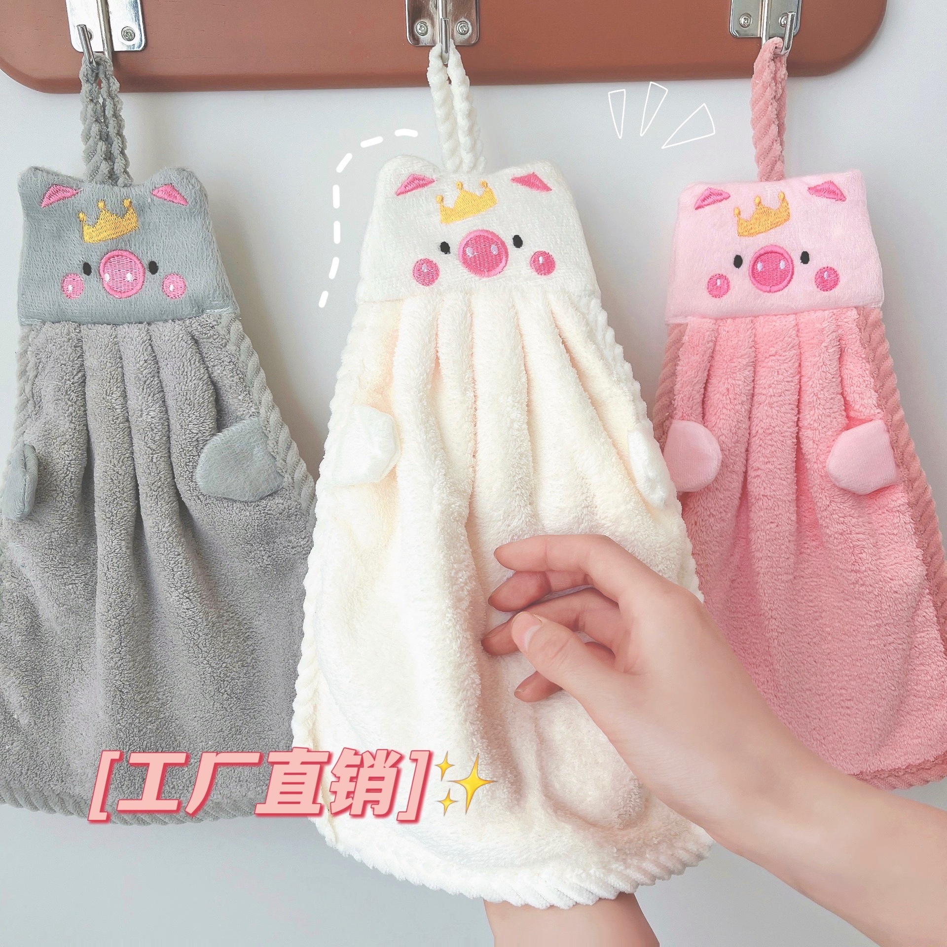 漫画風のかわいい吊り下げ式ハンドタオル、吸水性のあるコーラルベルベットタオル、家庭用キッチン漫画風ハンドタオル、吊り下げ式タオル、雑巾卸売
