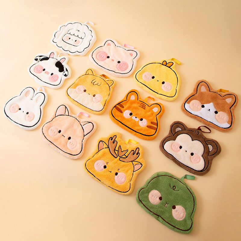 手拭きタオル十二生肖吊り式かわいいアニメ手拭きタオルサンゴパイルが厚くて吸水して毛が落ちない台所