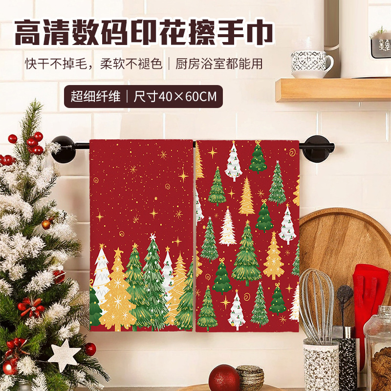 2025 クロスボーダーハンドタオルクリスマスプリントキッチンタオル吸収性マイクロファイバー食器洗いタオルギフトティータオル卸売
