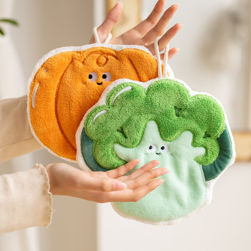 野菜牧歌的なハンドタオルぶら下げコーラルベルベット増粘超吸収性女性漫画子供ハンドタオル