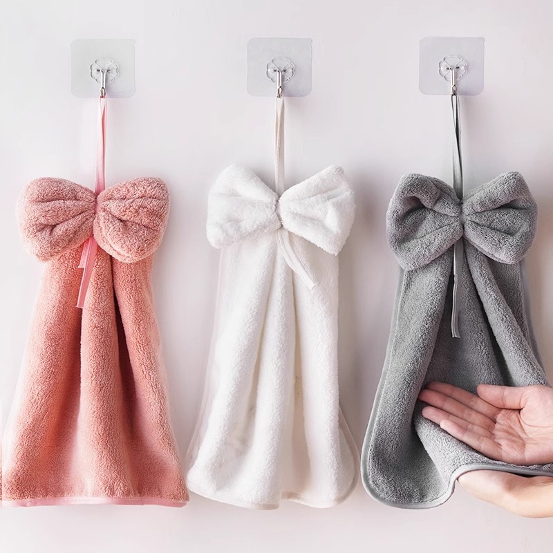 蝶結びハンドタオル 吊り下げタオル キッチン バスルーム 家庭用吸水性ハンドタオル 洗顔タオル