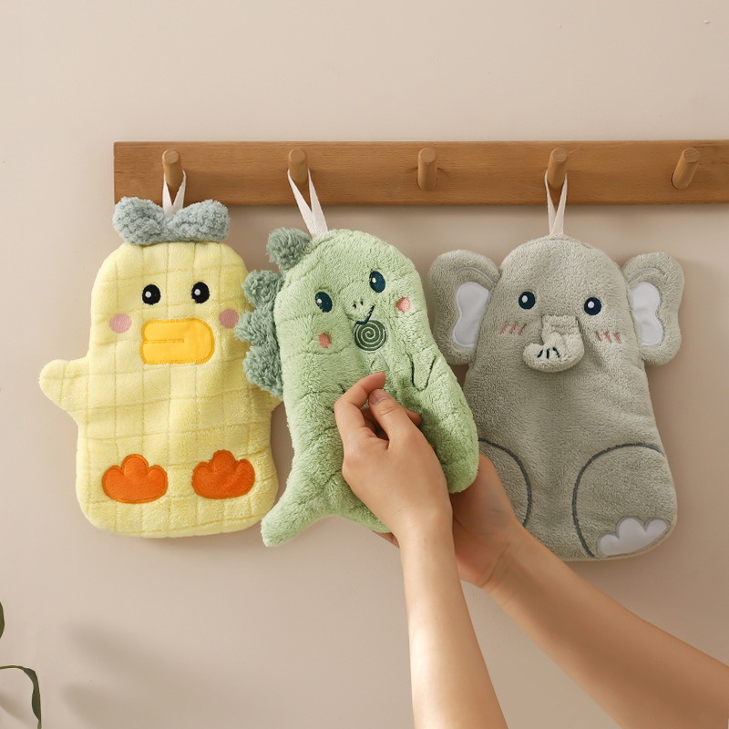 卸売漫画柄ハンドタオル、壁掛け式キッチンハンドタオル、吸水性、厚手、家庭用、子供用ハンドタオル、コーラルベルベット素材
