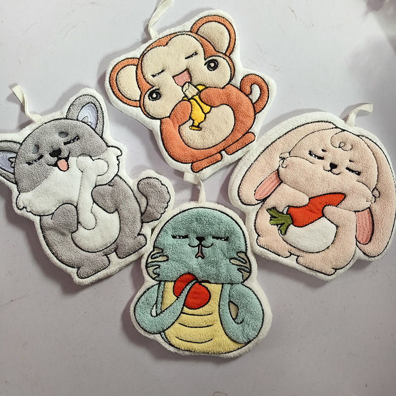 卸売家庭用刺繍花ハンドタオル漫画ハンギングハンドタオル吸収性ハンカチ浴室ハンギングタオル