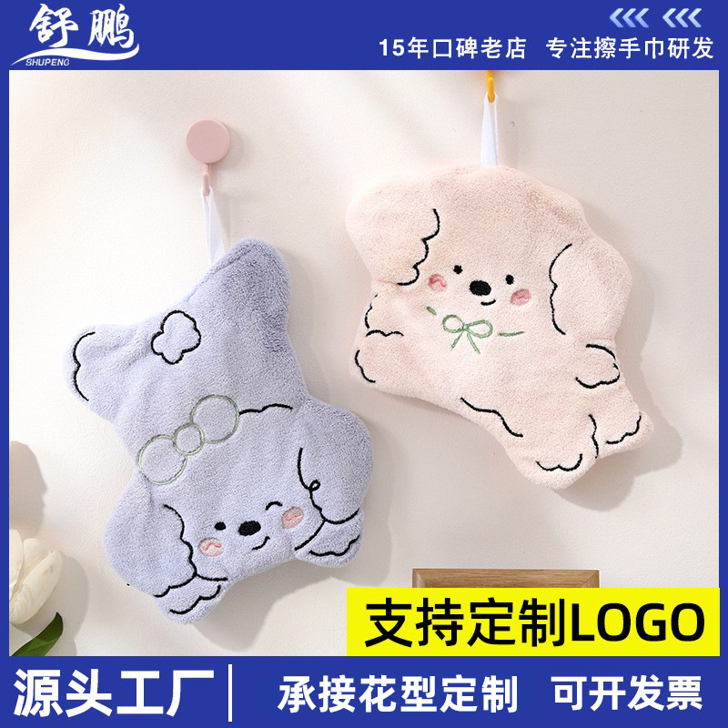 コーラルベルベット乳牛平面刺繍タオル浴室吊り式吸水タオルキッチン浴室タオルカスタマイズ可能