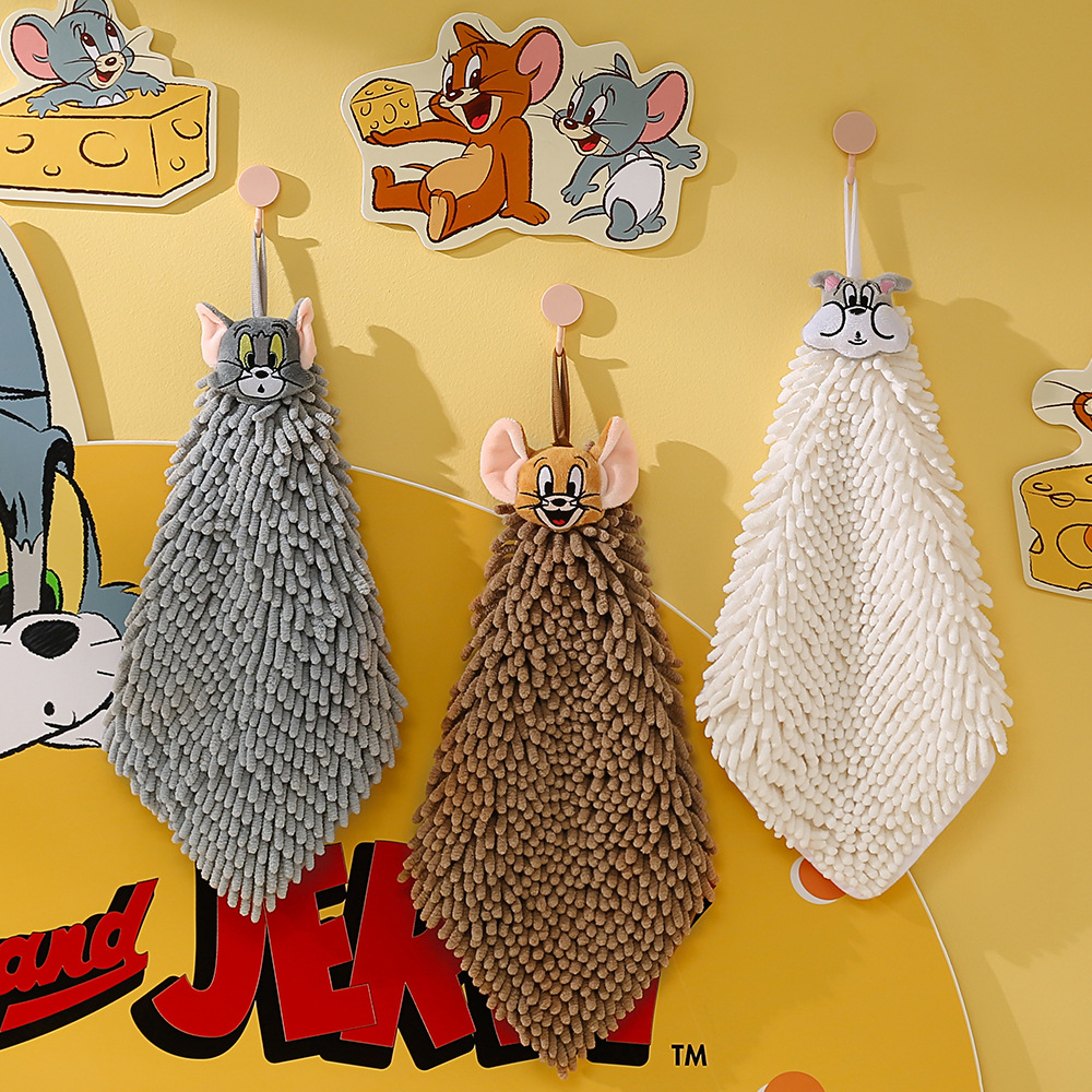トムとジェリー シンプル シェニール ハンドタオル キッチン 吊り下げ 両用 吸水速乾 スクエアタオル 正規品