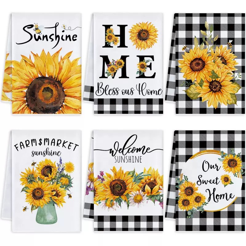 国境を越えた新しいチェック柄ひまわりの花のナプキン布家庭用ホテルレストランディッシュタオルハンドタオル工場直販