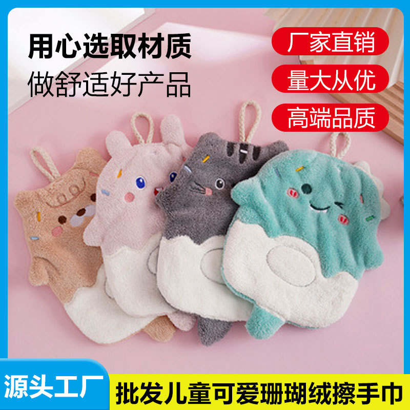 ハンドタオル漫画かわいいコーラルベルベットハンカチキッチン吸水速乾子供用ハンギング家庭用ハンドタオルホットセール