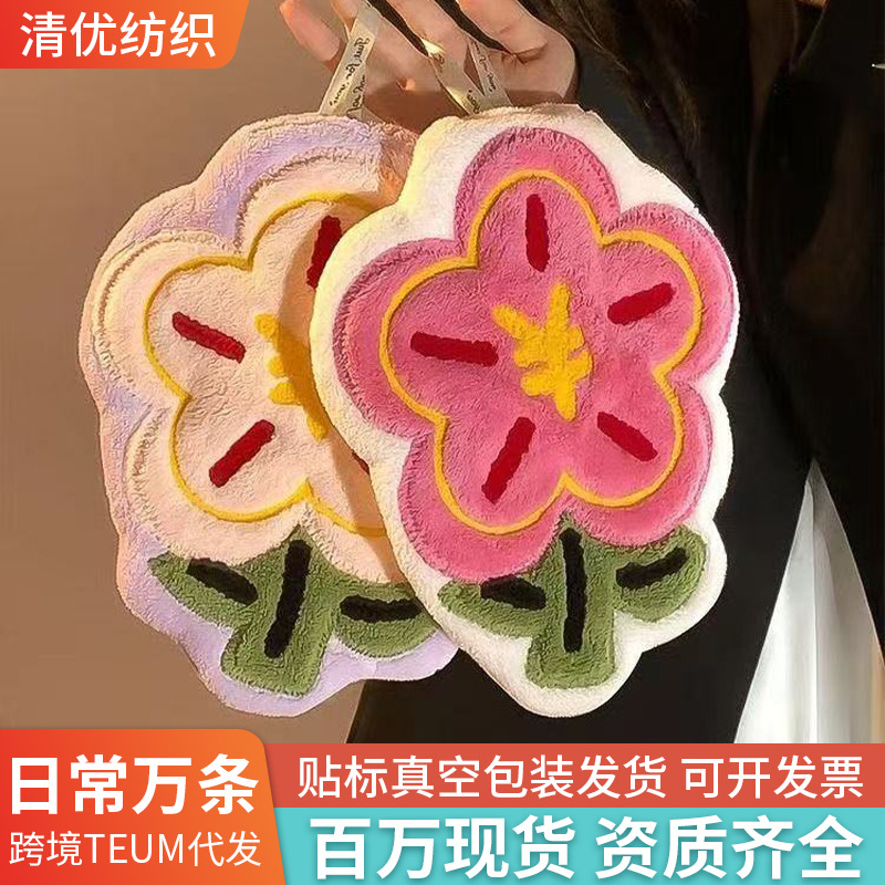クロスボーダーコーラルベルベットフラワーキュートタオル、吸水速乾、吊り下げ式、家庭用キッチン、お手入れ簡単ハンドタオル