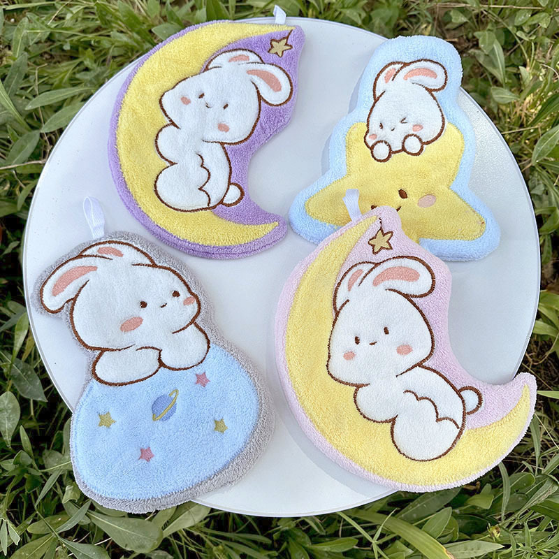 オーダーメイドタオル漫画かわいい星うさぎサンゴベルベットキッチン雑巾吸水子供トイレ吊りタオル