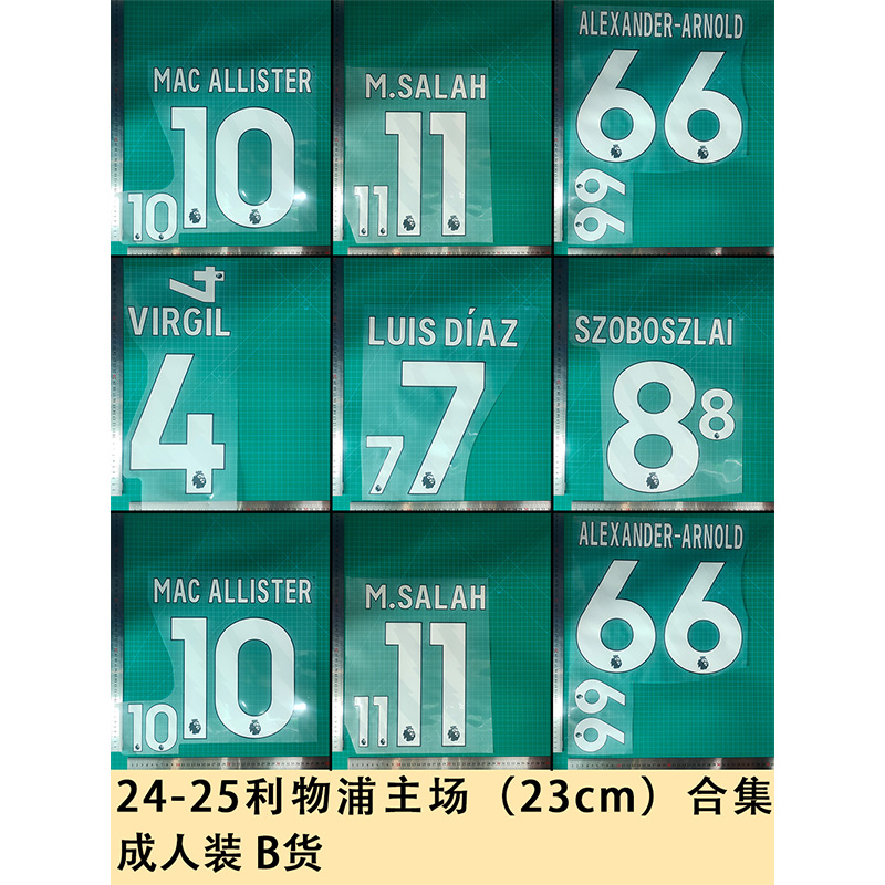 24-25リヴァプールのホーム (23cm) には、大人用のb貨物コート番号のアルファベットが熱くなっている