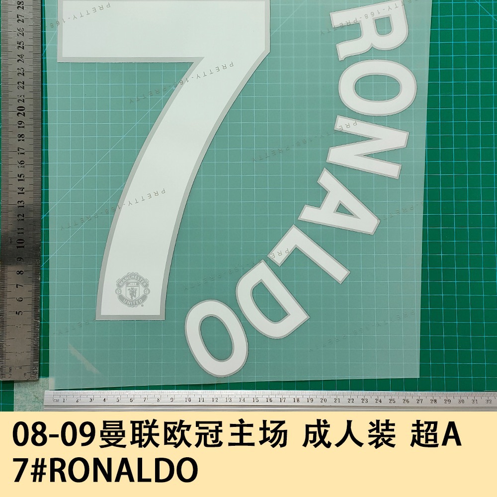 08-09マンチェスター・ユナイテッド・チャンピオンズホーム成人服A 7 # RONALDOユニフォーム番号アルファベット腕章パーマ番号