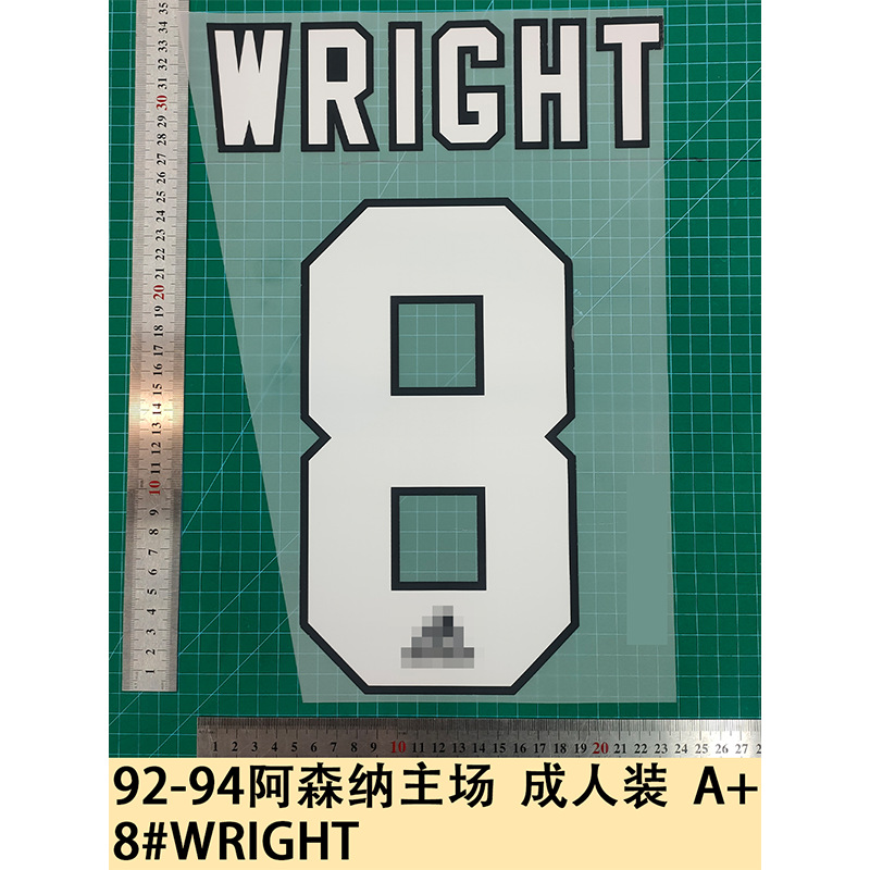 92-94 アーセナル ホーム 大人用 A+ 8 # WRIGHT ジャージ番号レターホットプリント番号熱転写ステッカー