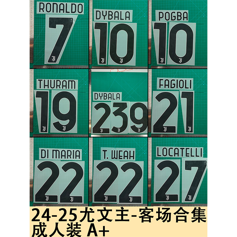 24-25尤文主-客場合集成人装Aコート番号アルファベット熱転写スタンプボール