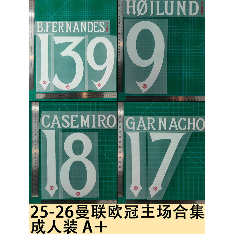 25-26 マンチェスター・ユナイテッド チャンピオンズ・リーグ ホーム コレクション 大人用 A+ ユニフォーム番号 レターホットプリント番号 熱転写ステッカー