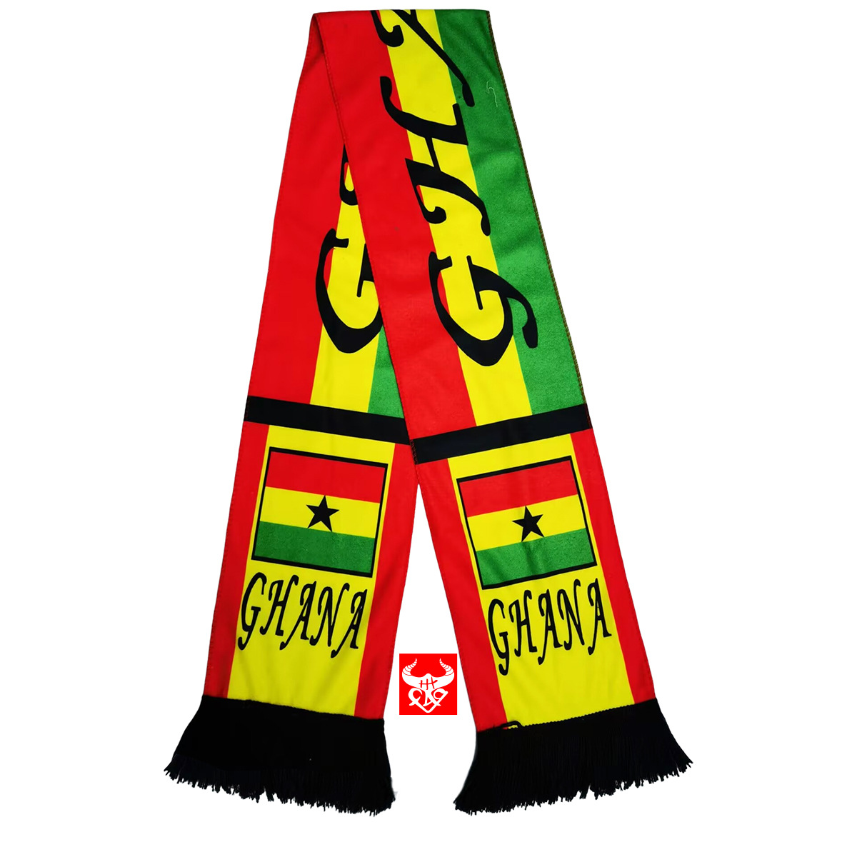 ファンマフラーガーナスポーツ試合応援応援サッカーマフラー流蘇ジャカードニットアクリルマフラー卸売り